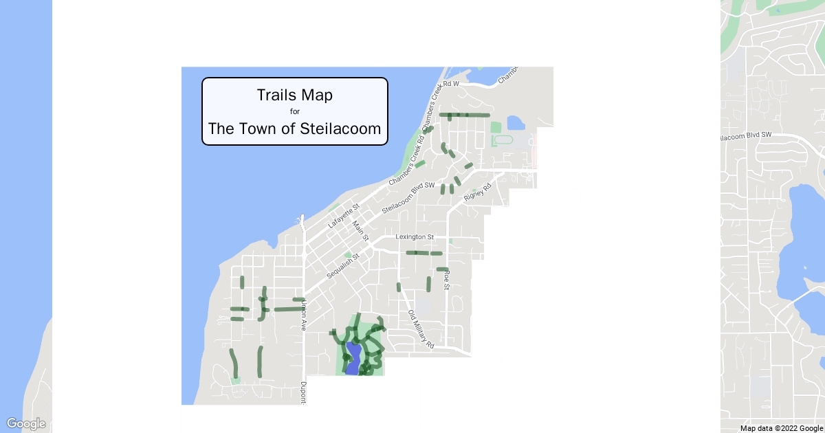 A basic map showing the locations of public trails in Steilacoom, WA