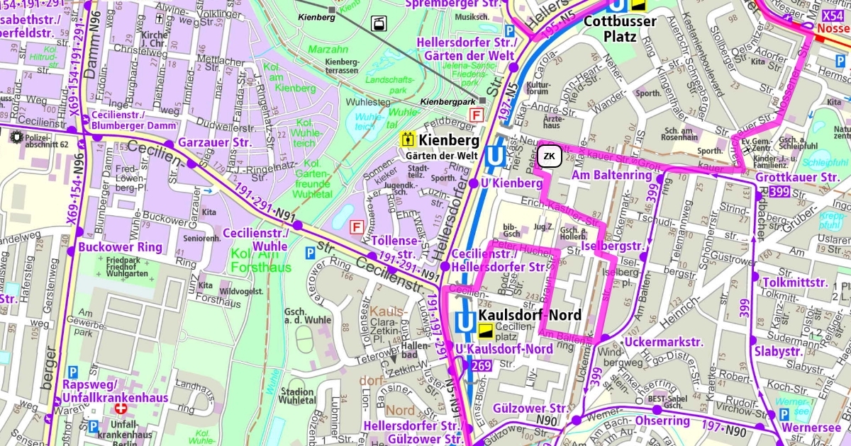 BVG Karte mit Linien und Brückenverzeichnis. Hier können Störungen u.Ä. eingezeichnet werden.