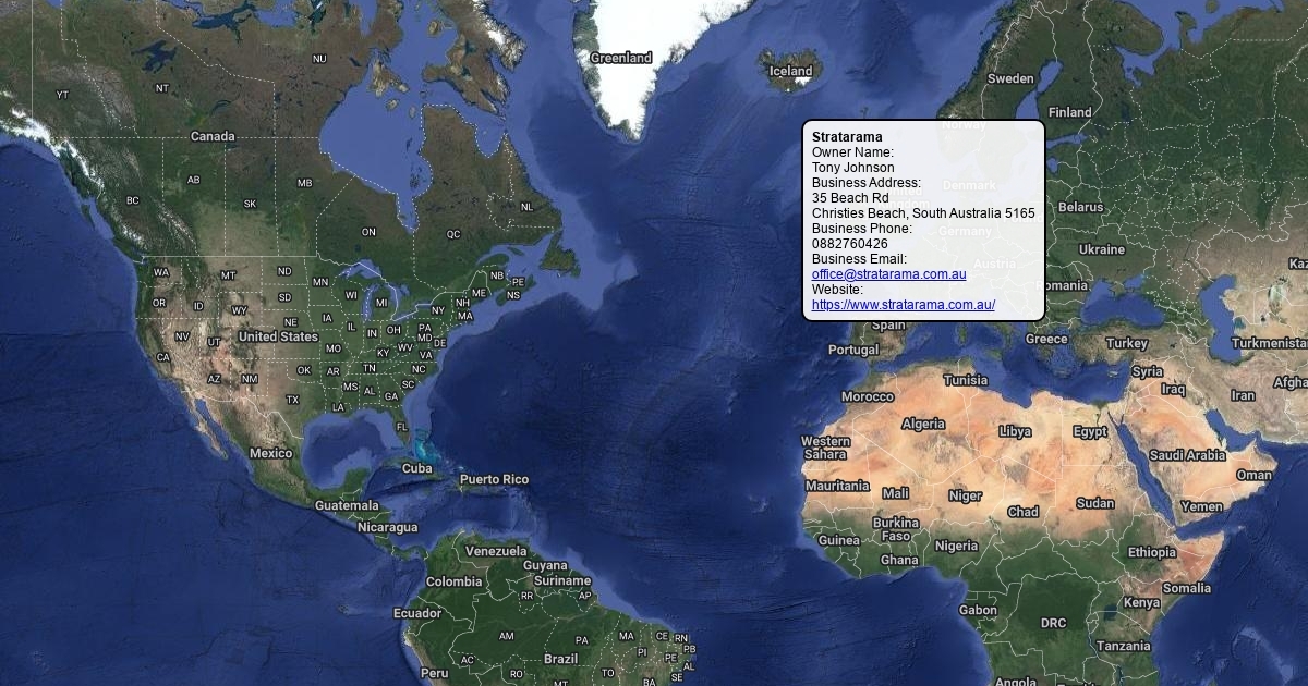 Owner Name: Tony Johnson Business Address: 35 Beach Rd Christies Beach, South Australia 5165 Business Phone: 0882760426 Business Email: office@stratarama.com.au Website: https://www.stratarama.com.au/