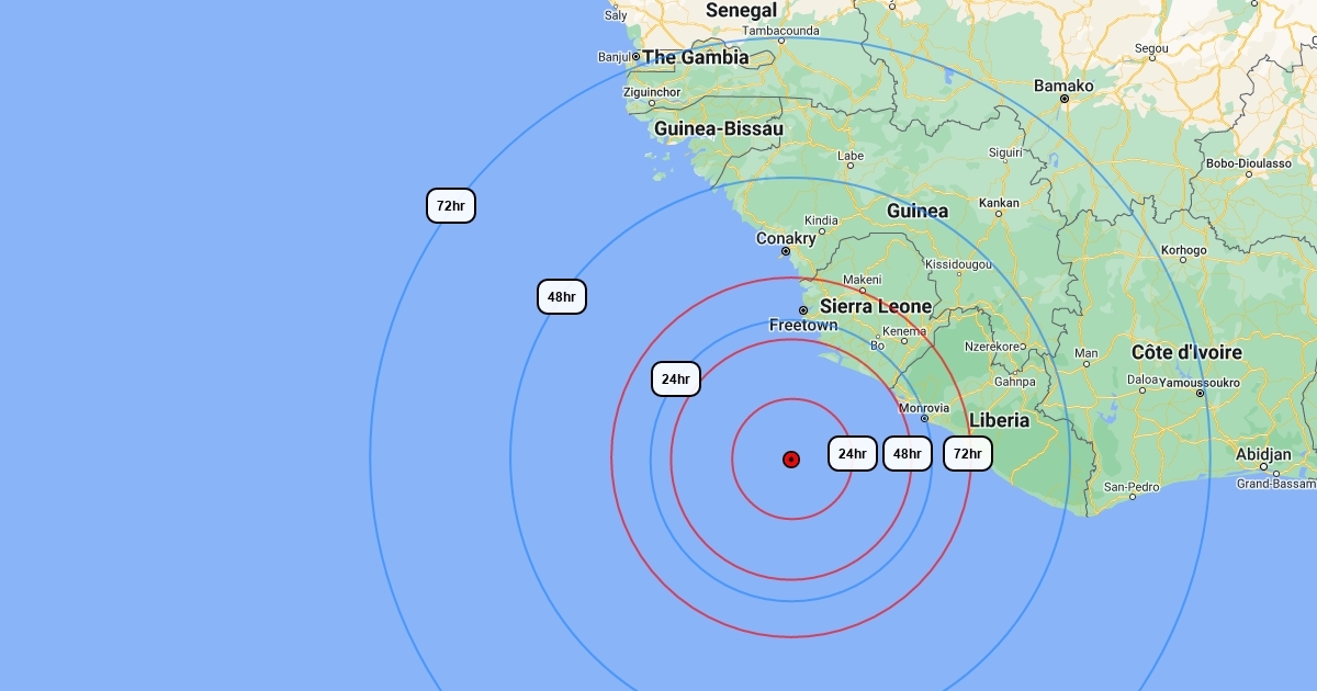 Max Rng of CERT SUB from 0335Z (PC SETUP) Red rng: submerged @ 3kts Blue rng: surfaced/diesels @ 7kts