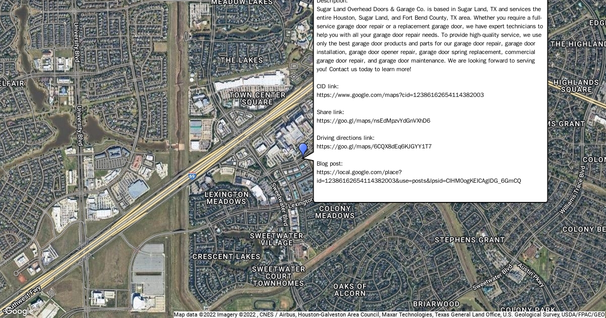 Sugar Land Overhead Doors & Garage Co. is based in Sugar Land, TX and services the entire Houston, Sugar Land, and Fort Bend County, TX area. Whether you require a full-service garage door repair or a replacement garage door, we have expert technicians to help you with all your garage door repair needs. To provide high-quality service, we use only the best garage door products and parts for our garage door repair, garage door installation, garage door opener repair, garage door spring replacement, commercial garage door repair, and garage door maintenance. We are looking forward to serving you! Contact us today to learn more!