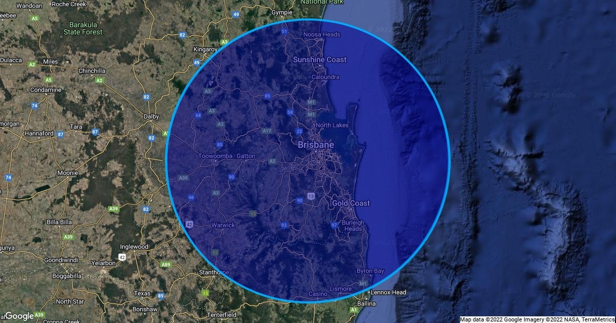 150km radius