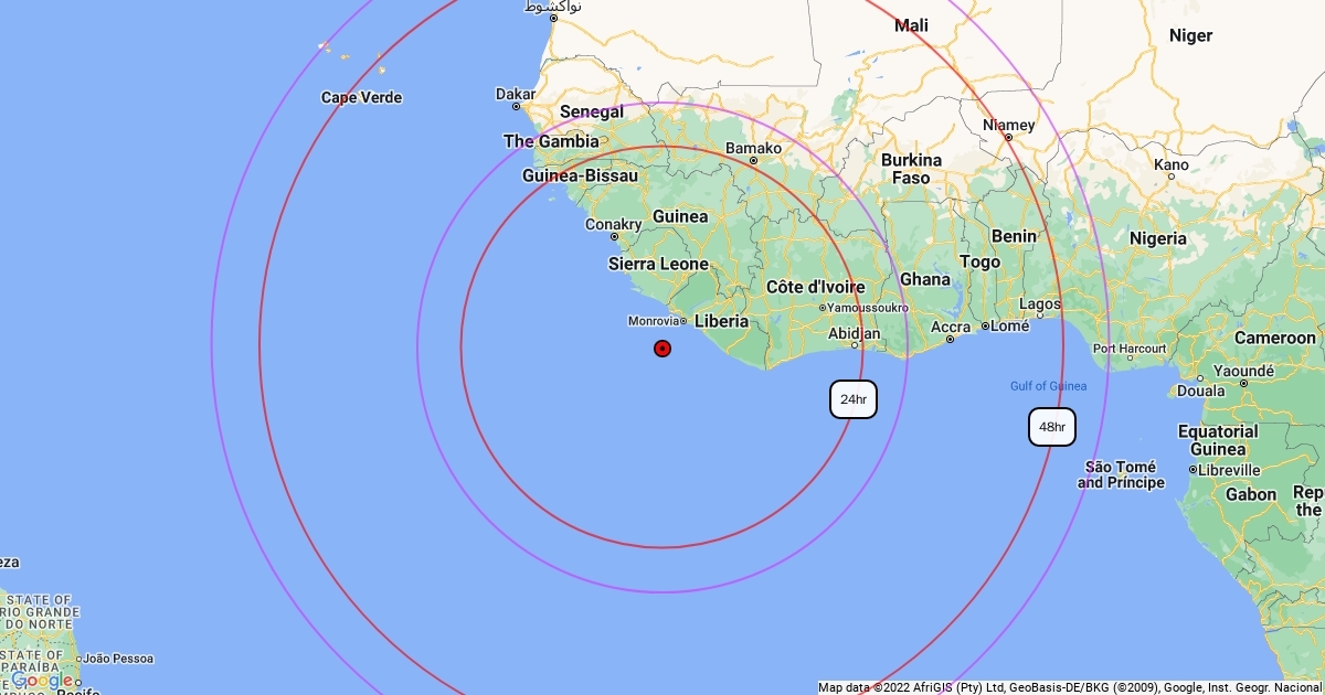 Max Rng of TG 001 from 2100Z (PC SETUP) Red rng: group @ 20kts Pur rng: wpns rng (+200NM)