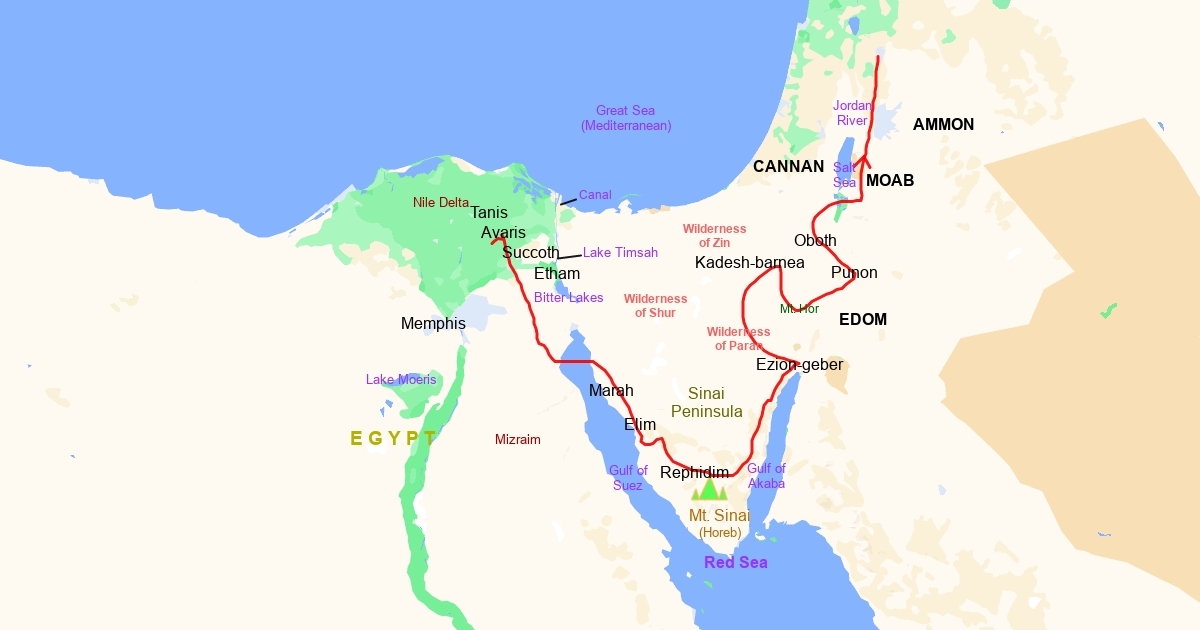Traditional Route the Israelites traveled when they left Egypt around 1445 BC.