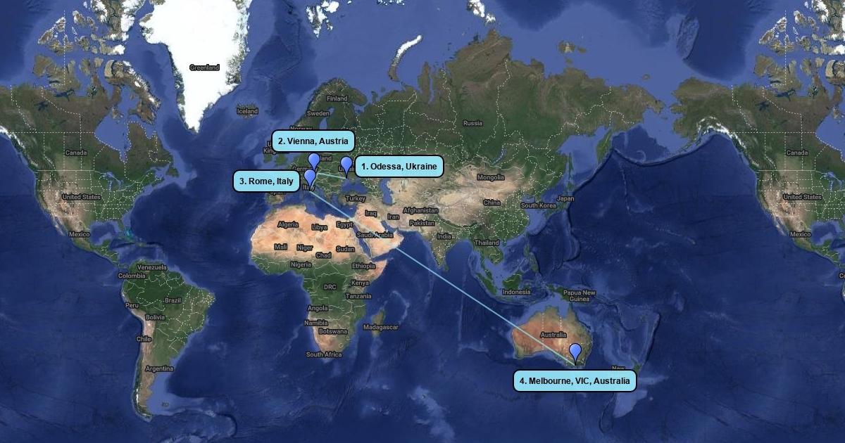 Liza Greenberg's and Vladimir, Anna and Michael Averbukh's trip from the Ukraine to Australia.