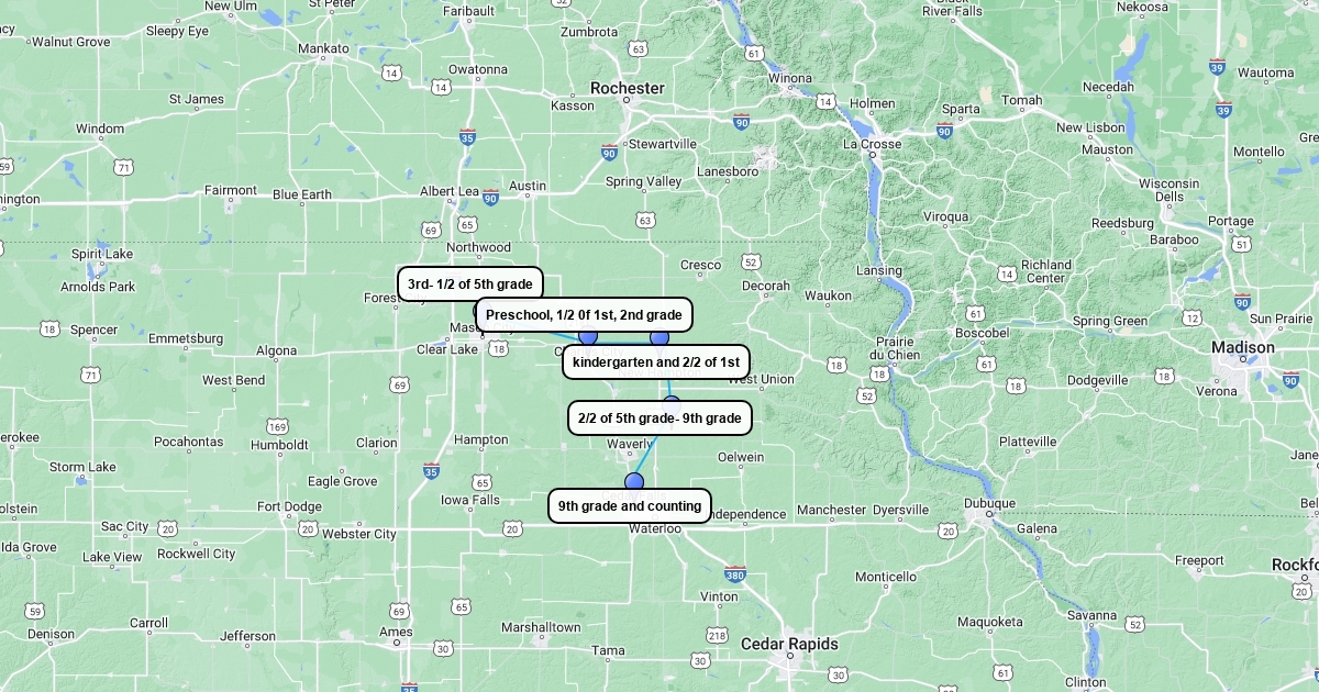This map shows where and when I lived in these places around my lifetime.