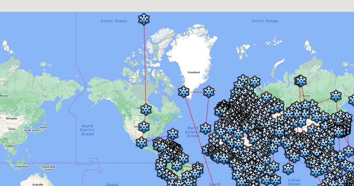 Map of Santa's location from the North Pole tracking center