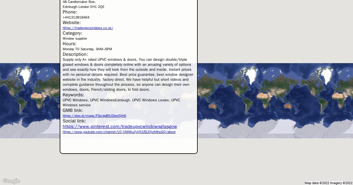 Address: 48 Candlemaker Row, Edinburgh London EH1 2QE Phone: +441313818464 Website: https://tradeupvcwindows.co.uk/ Category: Window supplier