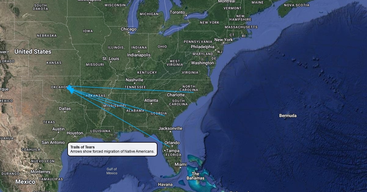 Arrows show forced migration of Native Americans
