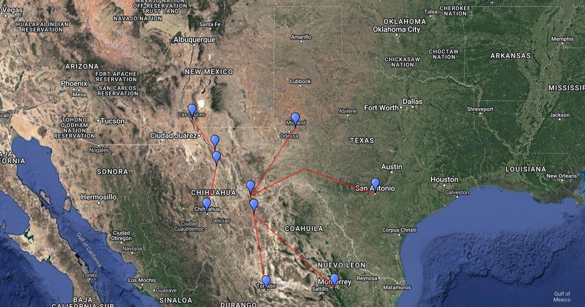 Cette carte represente les etapes du parcours des migrants (surtout mexicains) vers les Etats-Unis