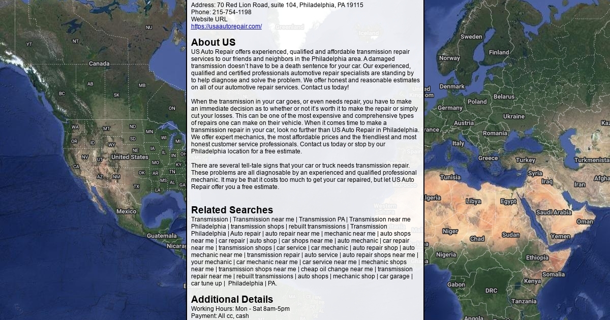 US Auto Repair offers experienced, qualified and affordable transmission repair services to our friends and neighbors in the Philadelphia area.