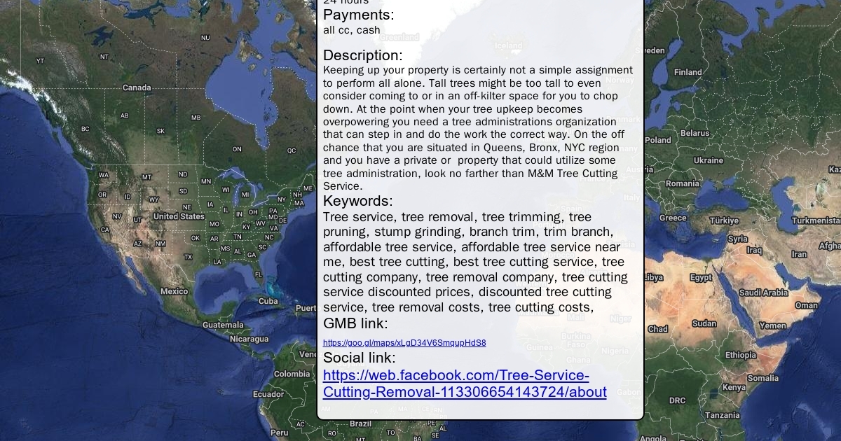 Address: 300 E 119th St New York, NY 10035 Phone: 212-381-4637 Website: http://www.mmtreecutting.com/ Category: Lawn care service Hours: 24 hours Payments: all cc, cash