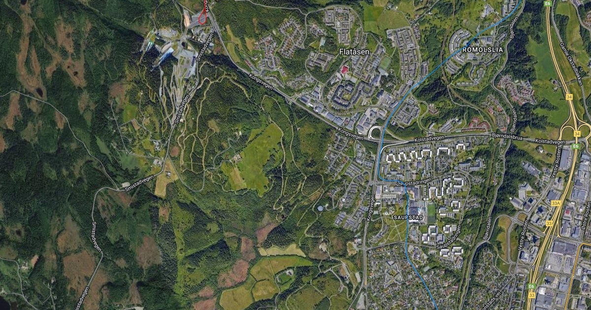 Kart over ønsket trikkenettverk i Trondheim