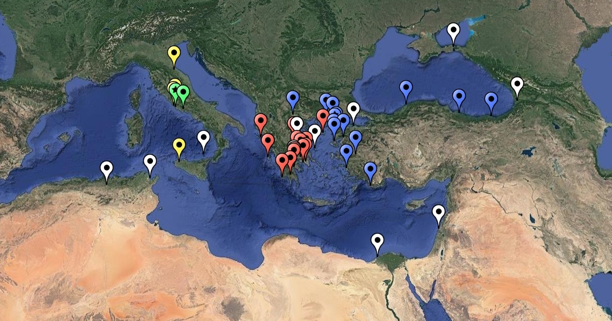 Draft map of epic poem city locations.