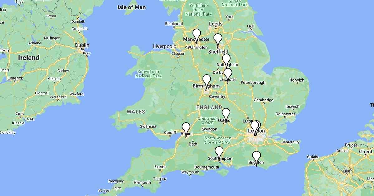 a map of some of the UK paeds hospitals
