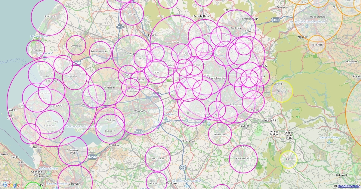 Proportional Circles of Population of UK cities