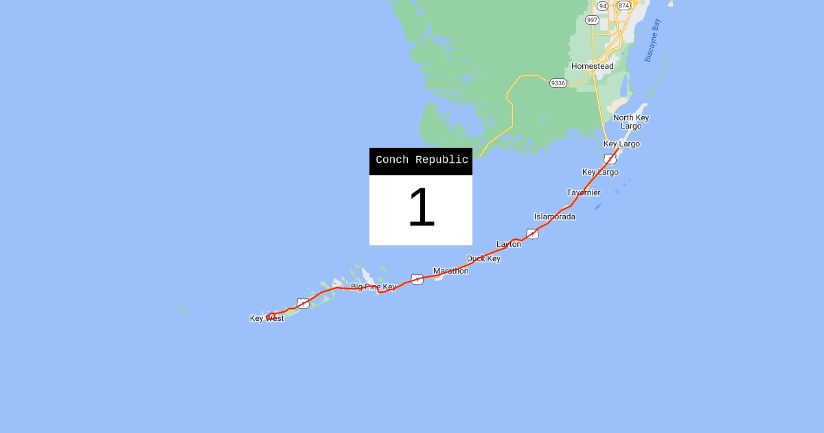 US Route 1 Turning Into Conch Republic Hwy 1 With Conch Republic Highway Sign