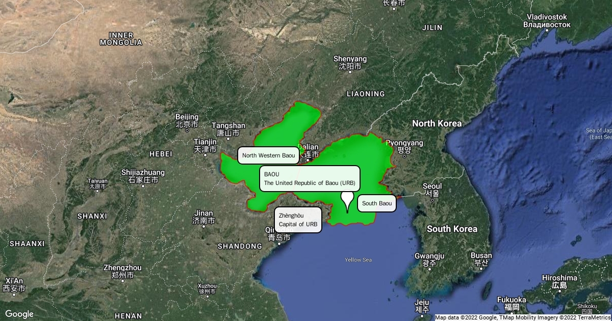A map showing the fictional Asian country of Baou.
