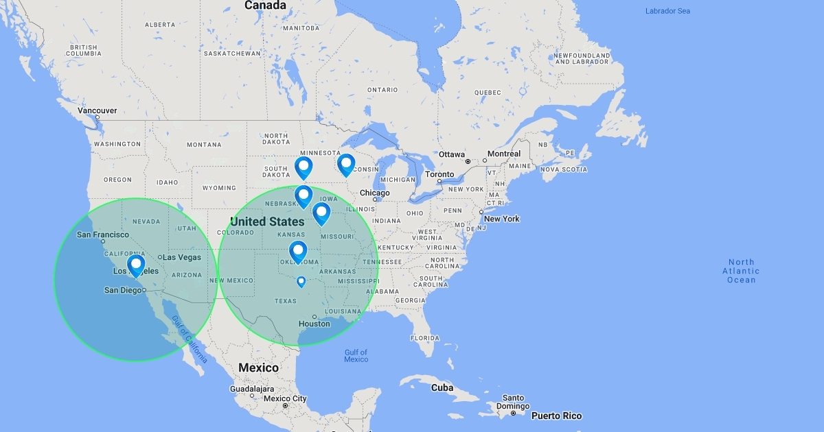 This is the map for the warehouse locator decision.