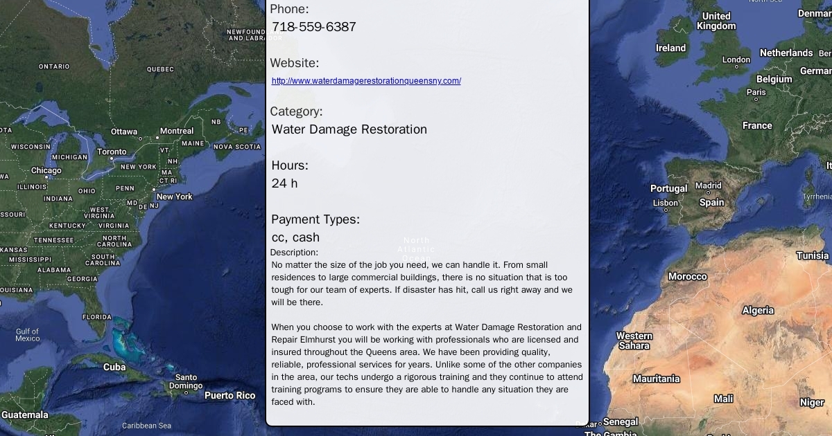 When you choose to work with the experts at Water Damage Restoration and Repair Elmhurst you will be working with professionals who are licensed and insured throughout the Queens area. We have been providing quality, reliable, professional services for years. Unlike some of the other companies in the area, our techs undergo a rigorous training and they continue to attend training programs to ensure they are able to handle any situation they are faced with.