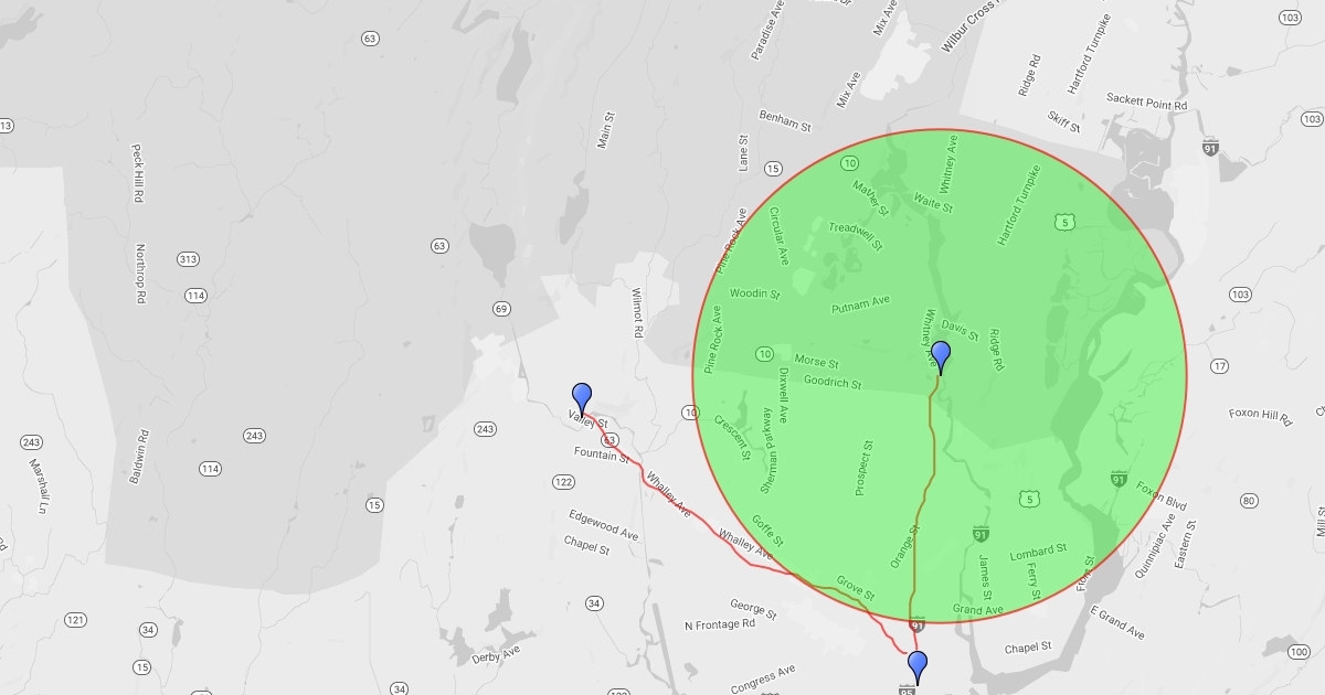 Water Street in relation to EW and Westville