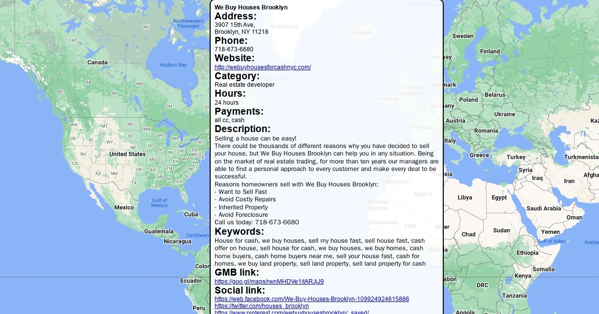 Address: 3907 15th Ave, Brooklyn, NY 11218 Phone: 718-673-6680 Website: http://webuyhousesforcashnyc.com/ Category: Real estate developer