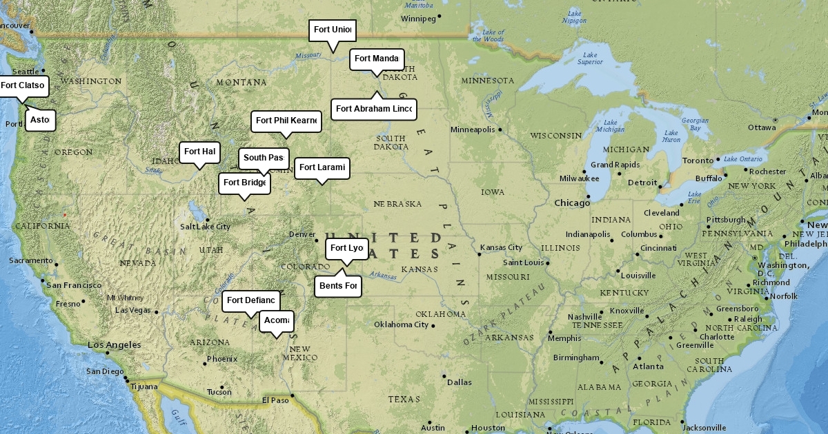map of historic locations including forts