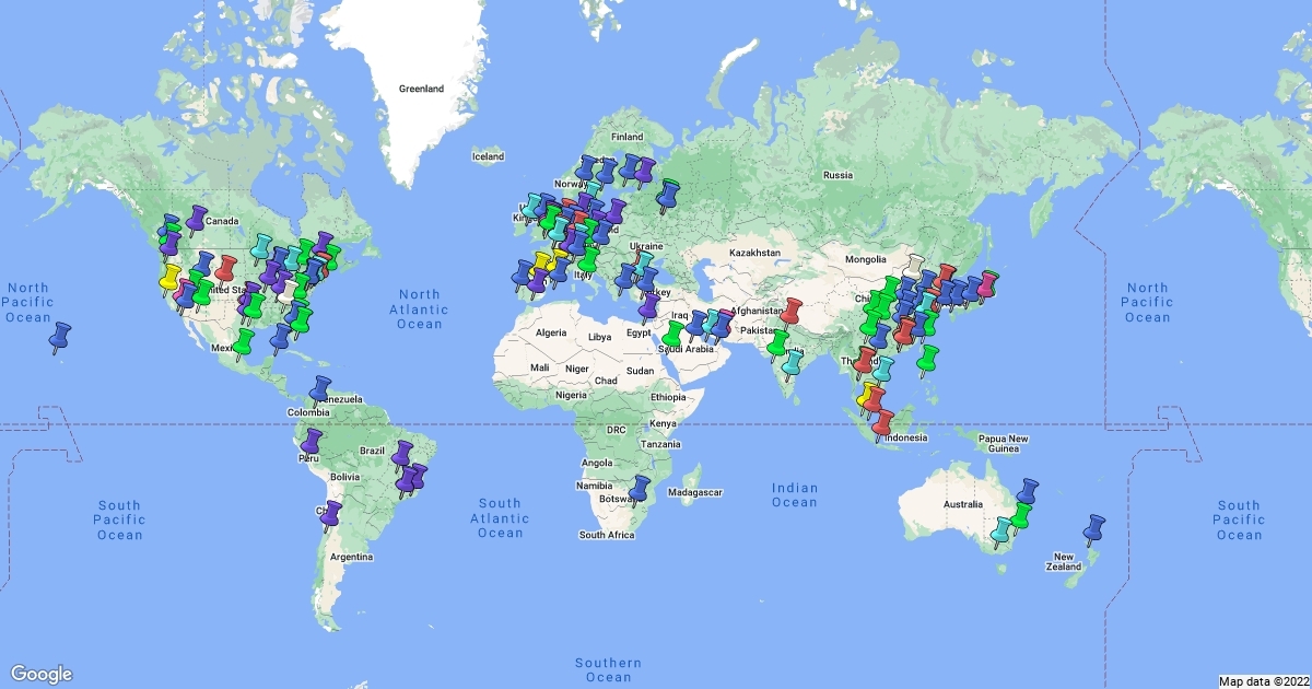 World airports by yearly number of flights.
