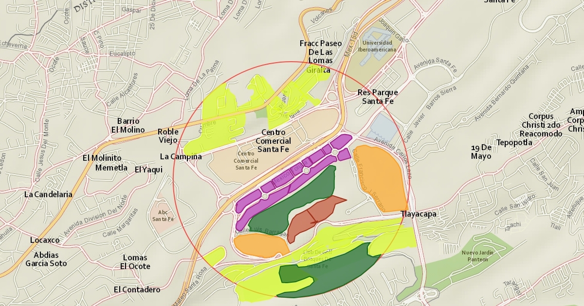 Zonas habitacionales, áreas verdes y edificios