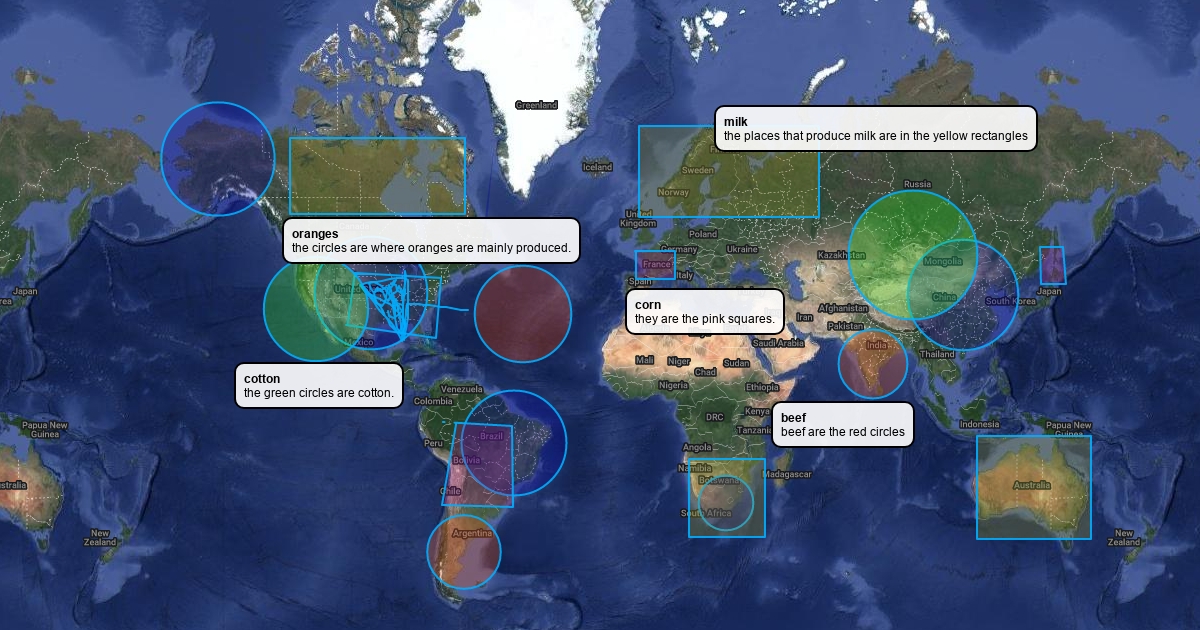 cotton, corn, oranges,beef and milk