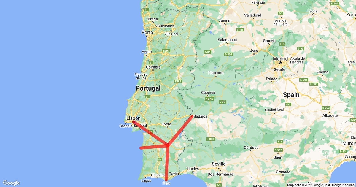 badajoz-beja-faro-lisbon-sines