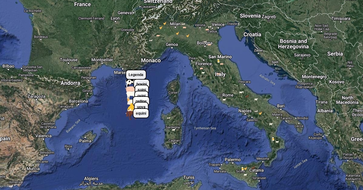 carta tematica sugli allevamenti in Italia
