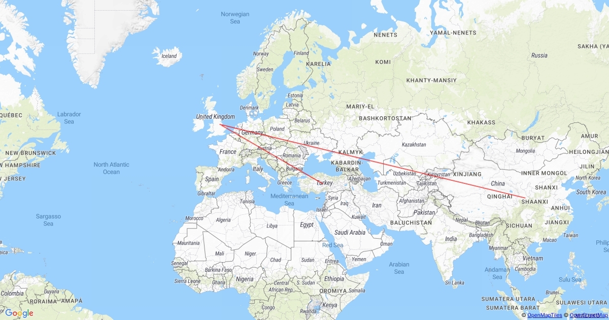 china and turkey to england