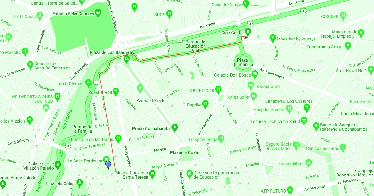 esta es la ruta para llegar al cine center desde el colegio la salle
