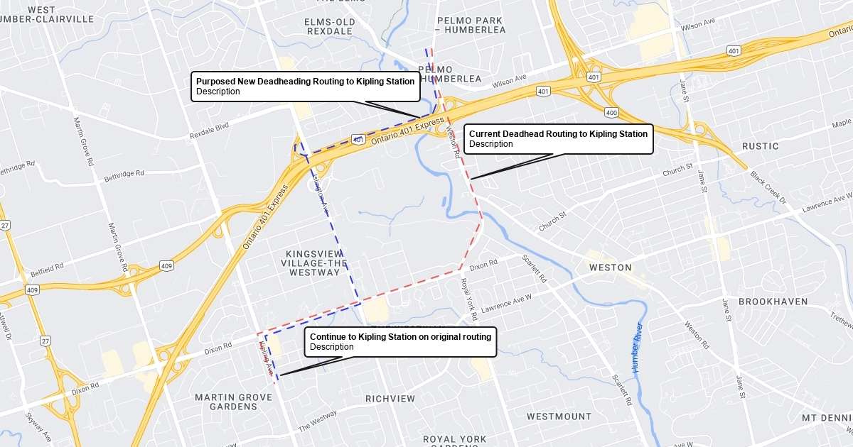 Current and purposed deadheading routing