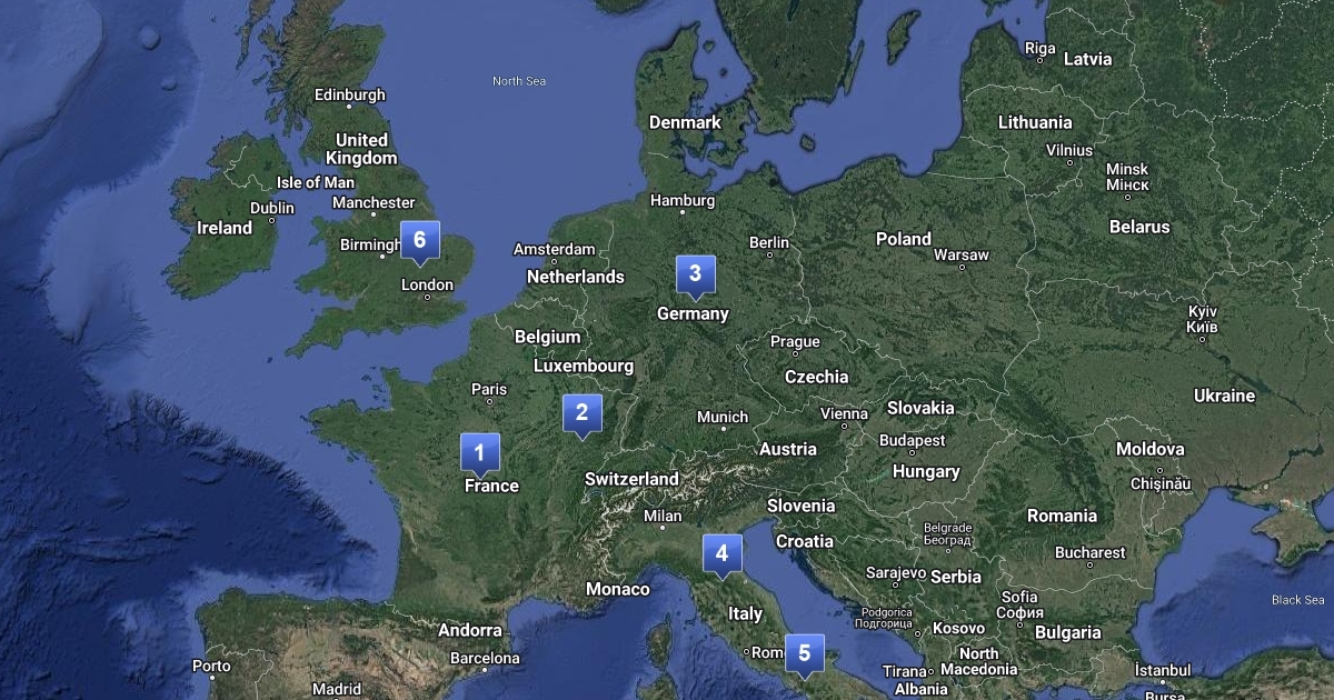 diferentes puntos importantes de europa