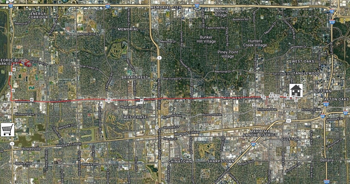 map from home to westside