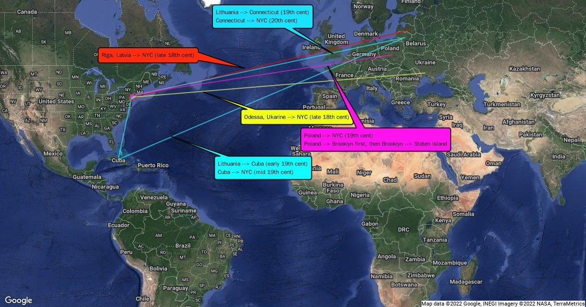 map of history of my family's immigration