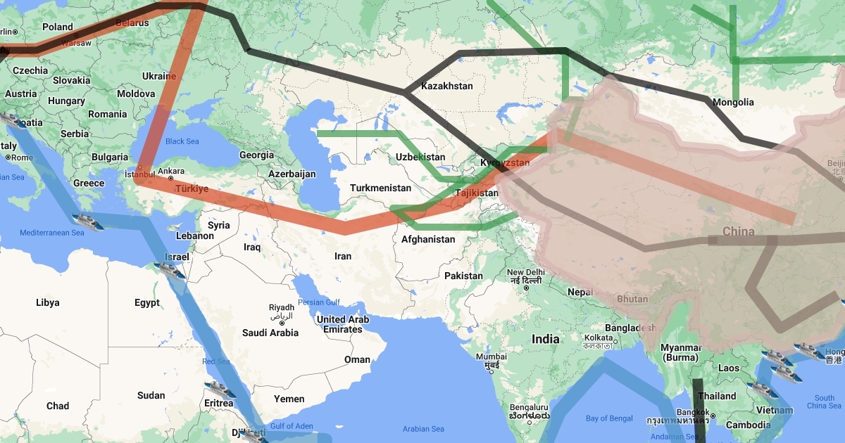 Carte de la route de la soie entre la Chine et l'Europe