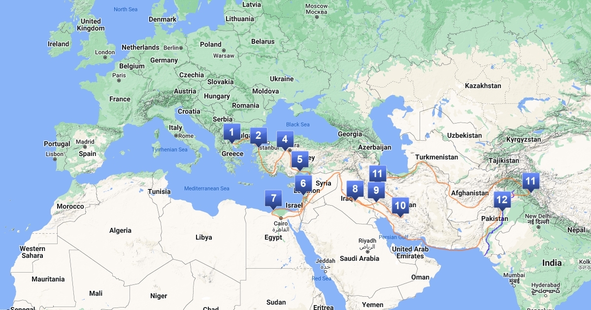 Percorso compiuto da Alessandro Magno.