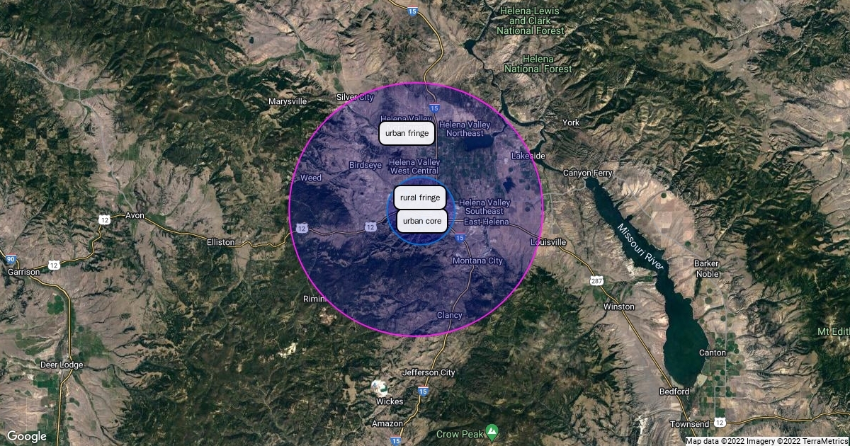map of helena urban core,rural fringe, urban fringe