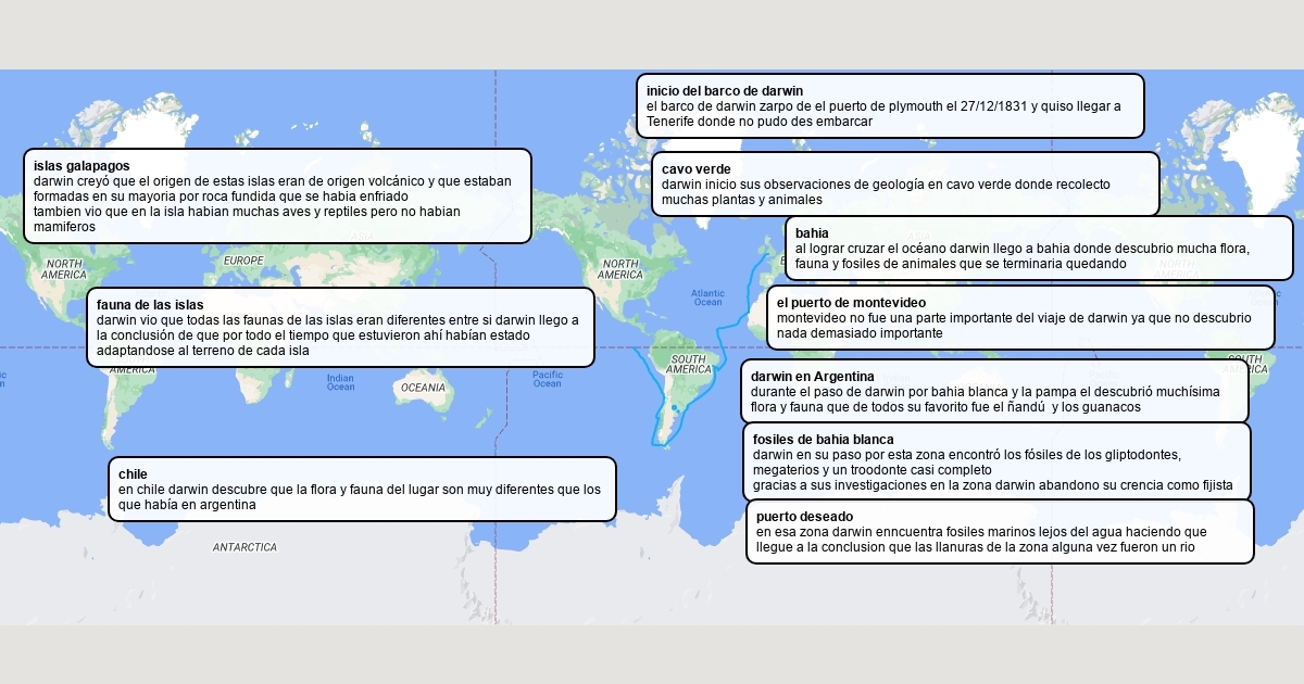 mapa del viaje de darwin