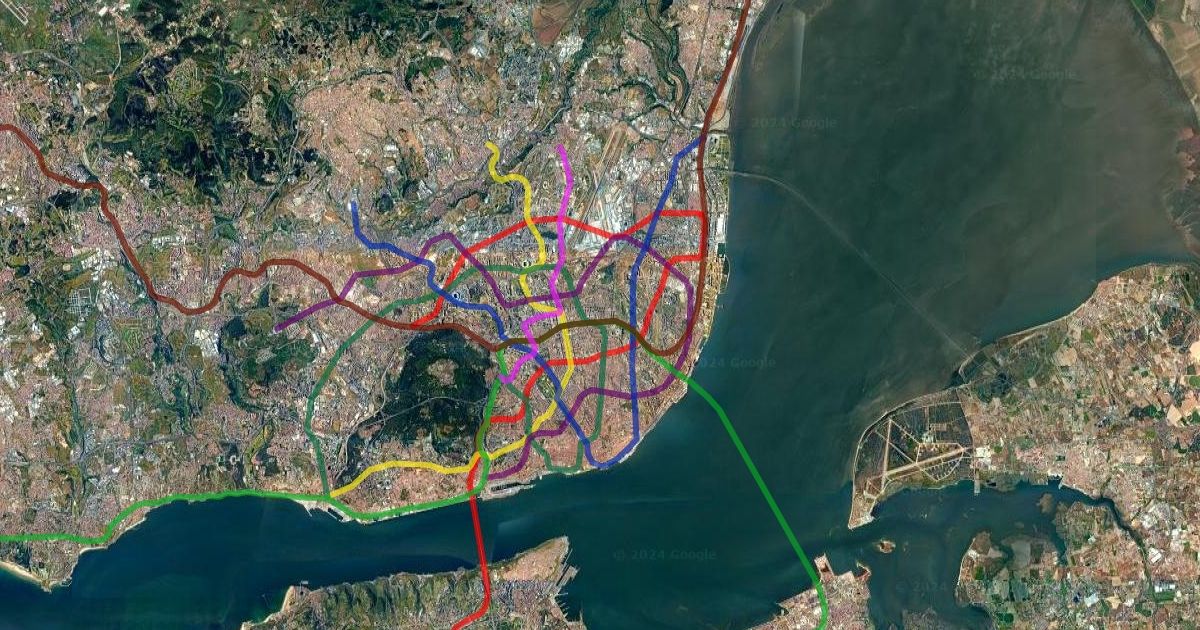 mapa de uma hipotetica rede de metro em lisboa