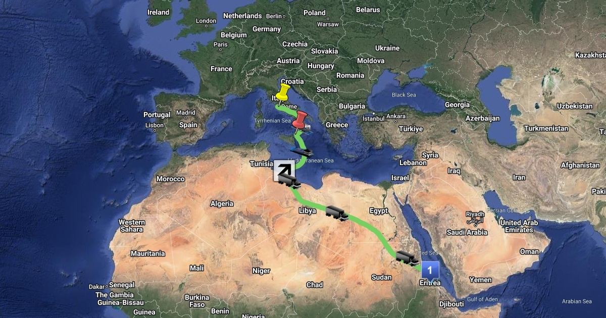 tragitto compiuto dal mio migrante eritreo