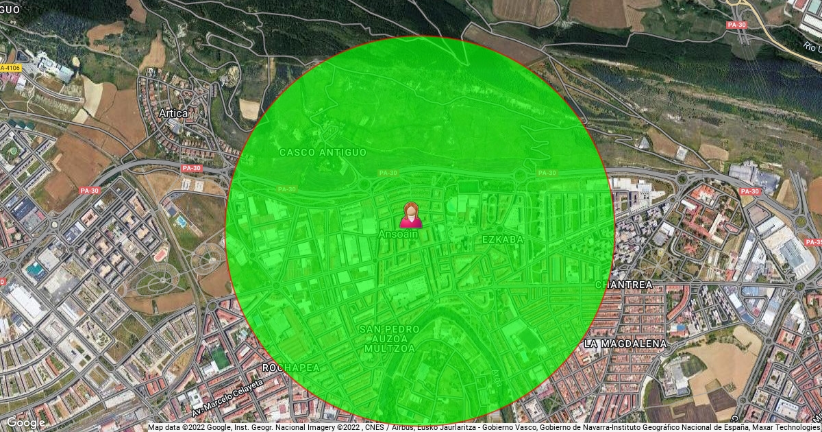 este es el radio que tenemos para andar desde la plaza Rafael alberti