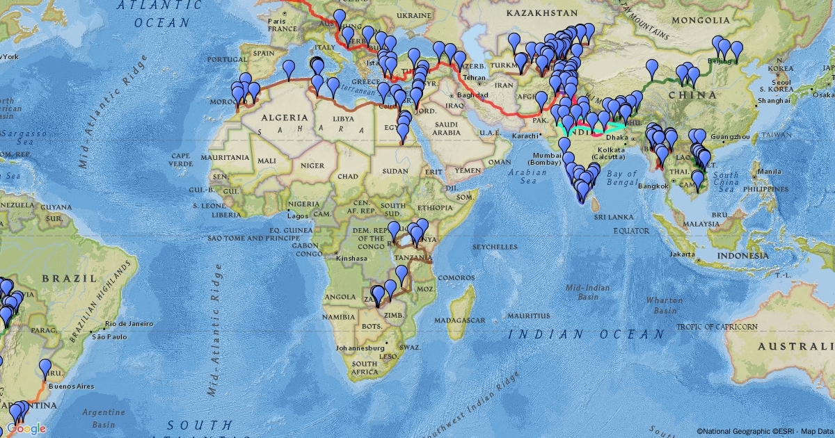 Map routes of overland journeys