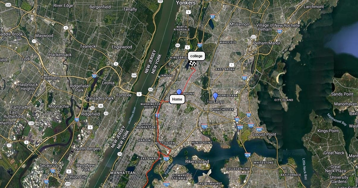 The School map is the description of my daily routine from home (1840 grand concourse) to my work place. Also, from my work place (Fulton, NY, NY 10038) to Lehman College. This routine is from Monday to Friday.