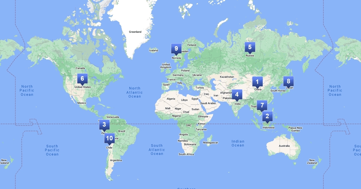top 10 vesiviljelusriigid