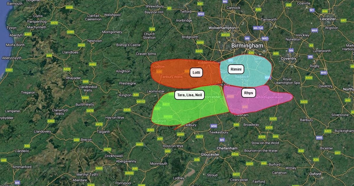 Rough visual guide to viewing areas