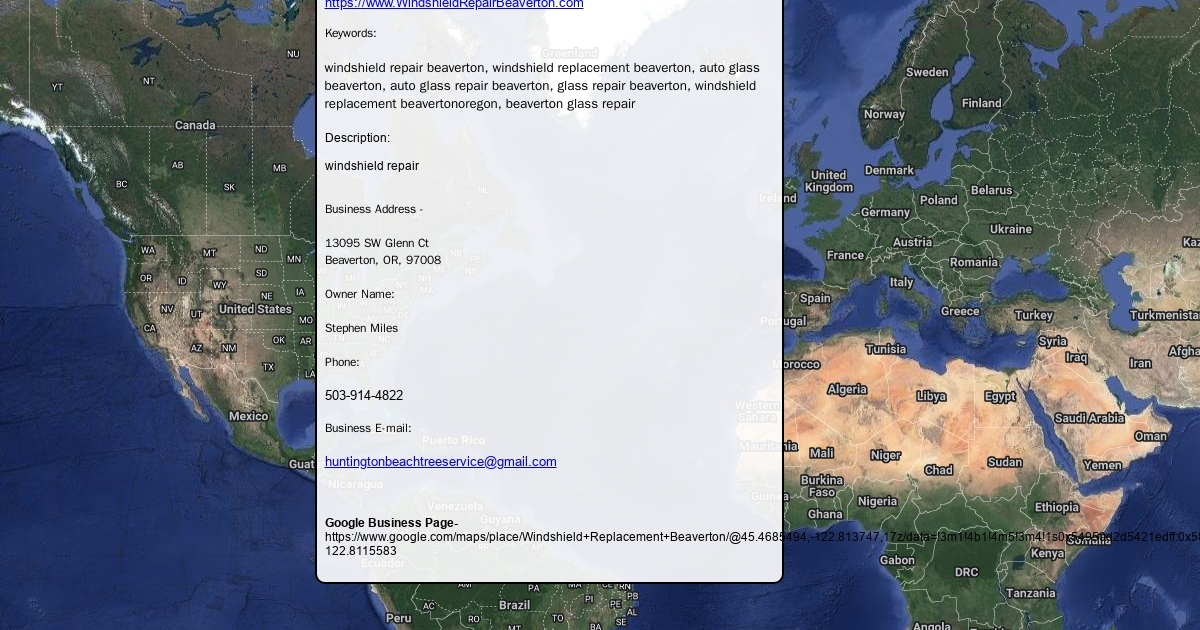 Google Business Page-https://www.google.com/maps/place/Windshield+Replacement+Beaverton/@45.4685494,-122.813747,17z/data=!3m1!4b1!4m5!3m4!1s0x54950d2d5421edff:0x58458393a82ce911!8m2!3d45.4685494!4d-122.8115583